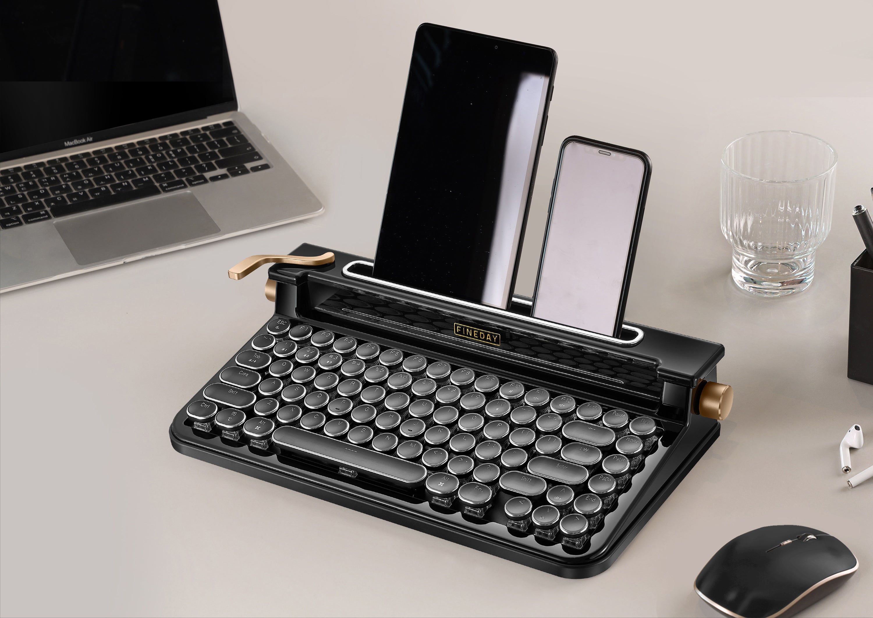 Enjoy white LED backlight with Aluminum keycaps.