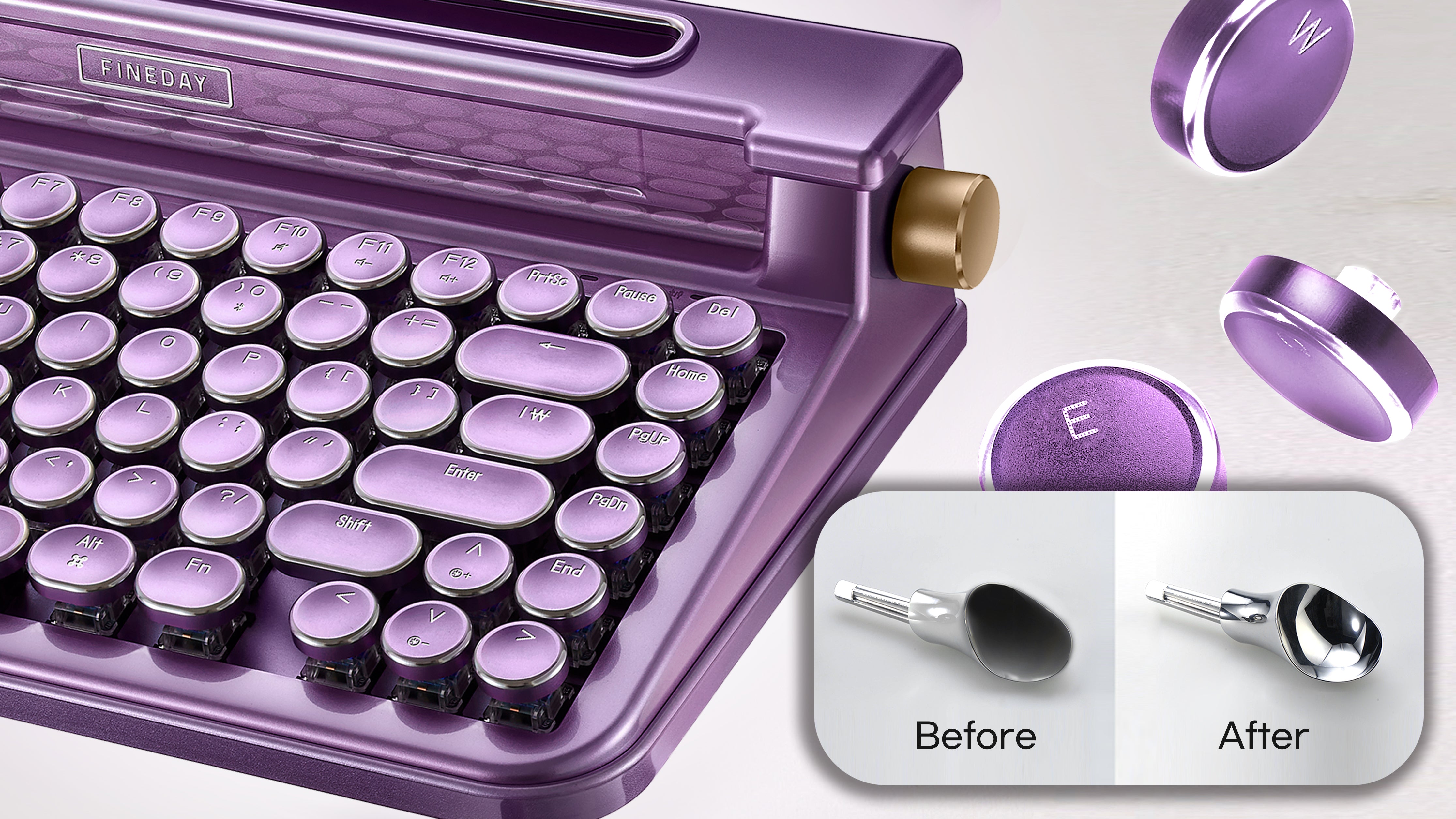 Crafted from a single sheet of aluminum, our keycaps are delicately shaped and alphabet-engraved through perforation. These high-quality keycaps are visible in any lighting, offering luxury and durability. Unlike plastic or alloy keycaps that degrade over time.